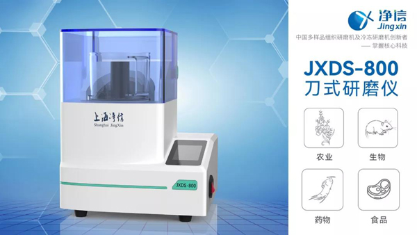 采用上海凈信刀式研磨儀JXDS-800 對(duì)樣品進(jìn)行預(yù)處理, 可以進(jìn)一步提高樣品的均一化程度, 更好地保留分析目標(biāo)化合物, 為食品樣品中待測(cè)組分的提取、凈化、濃縮, 進(jìn)行定量、定性分析檢測(cè)做好充分準(zhǔn)備, 保證結(jié)果的準(zhǔn)確性和重現(xiàn)性。